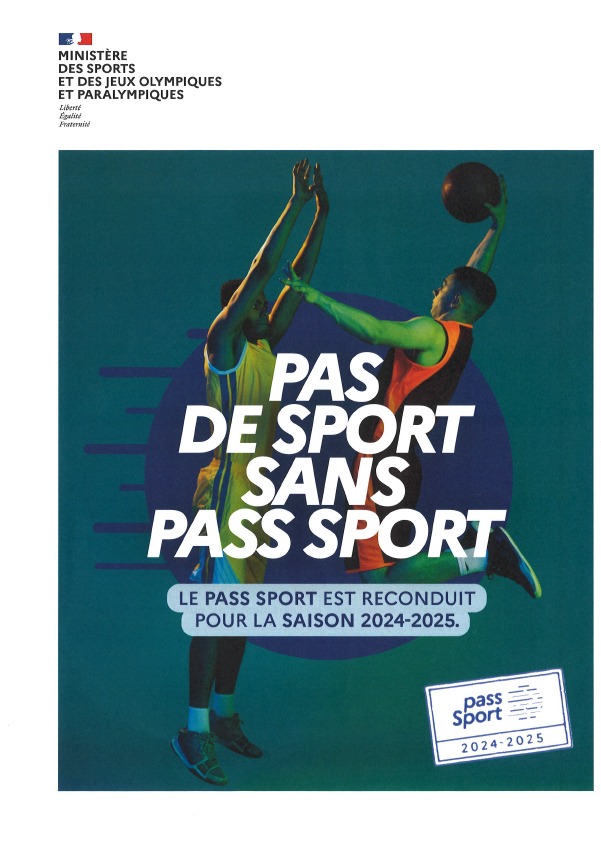 Votre enfant bénéficie sûrement du Pass'Sport. Pensez à le télécharger sur pass.sports.gouv.fr et à fournir le code au professeur avant le 30 décembre 2024. Les